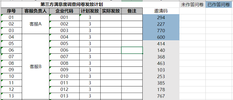 问卷发放数量不少于全部客户企业人数的10%;同时确保答