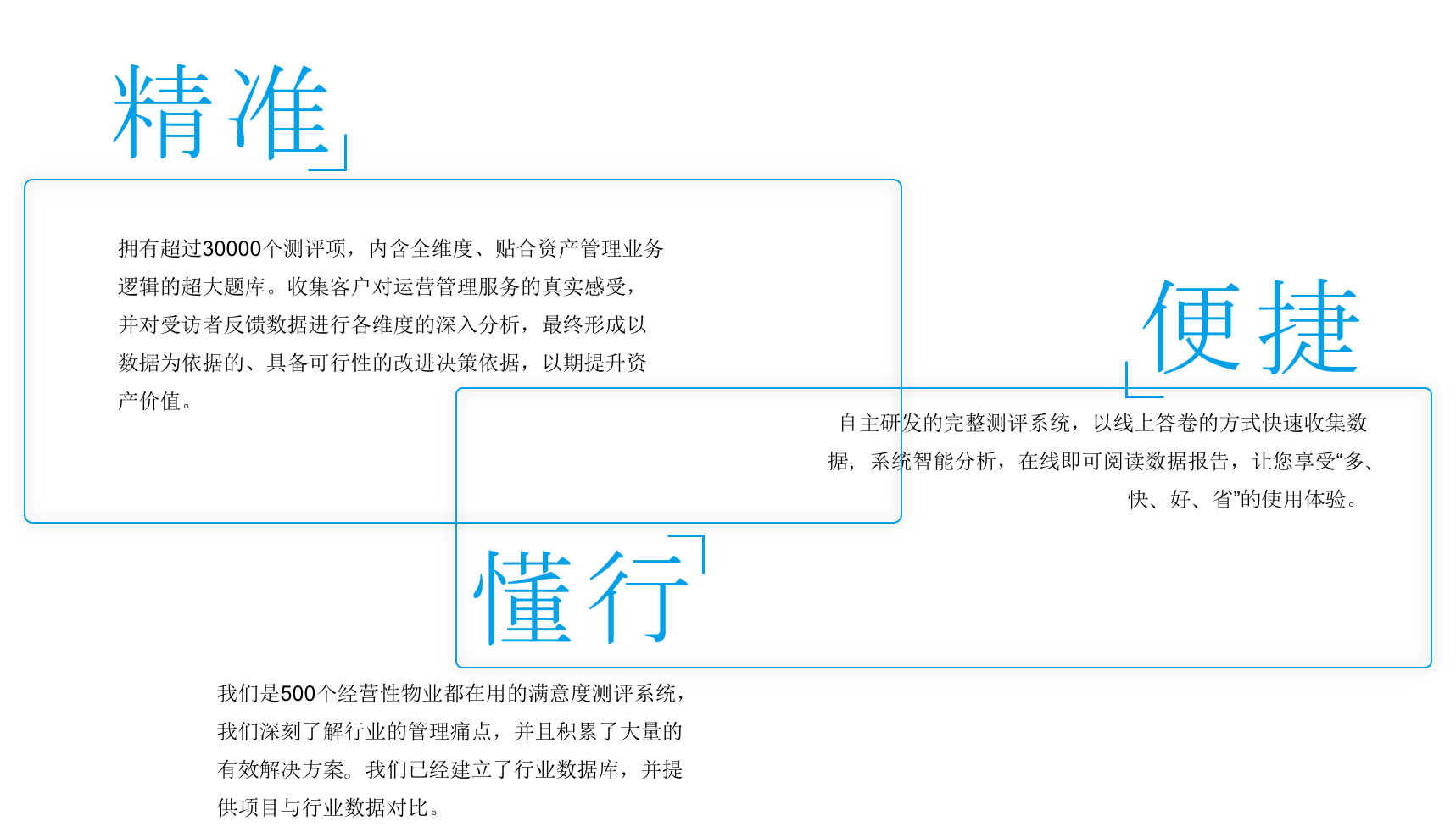 我们希望通过行业大数据对比,帮您挖掘项目亮点,明确项目的差异化竞争优势,并找到提升关键路径。我们帮助运营商逐步完善物业管理服务并改进运营方式。